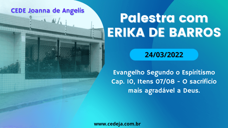 Já está disponível, em nosso canal, a palestra de hoje com a nossa Presidente, Erika de Barros.